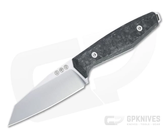 Handle: Attached to the full tang blade are chamfered shred carbon fiber scales designed for a minimal carry footprint and ergonomic comfort. Distal tapering from the center creates a secure grip on the slim design. Scales are easily removed and replaced using the included Torx key for cleaning or replacement with alternative scales produced in collaboration with Daily Customs. With the scales off the lanyard loop can be reversed and hidden within the handle.