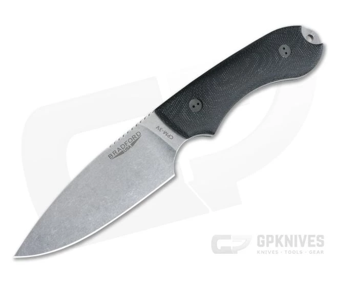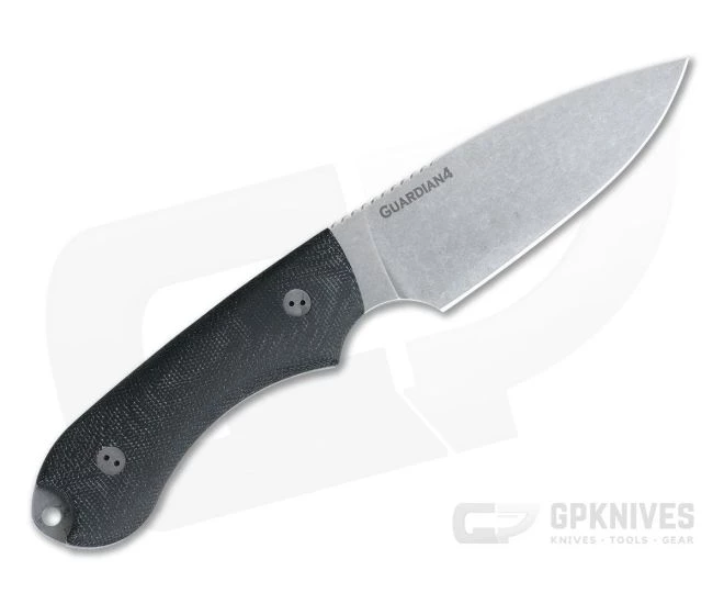 The Bradford Guardian4 is a mid-size, American made fixed blade that makes a perfect belt-carry companion for hunting or outdoor adventures. A step up from the EDC Guardian3, the Guardian4 was built to handle heavier cutting tasks and for users with larger hands. This version of the Guardian4 comes with a fully flat ground, stonewashed CPM 3V blade and 3D Black Micarta handle scales.