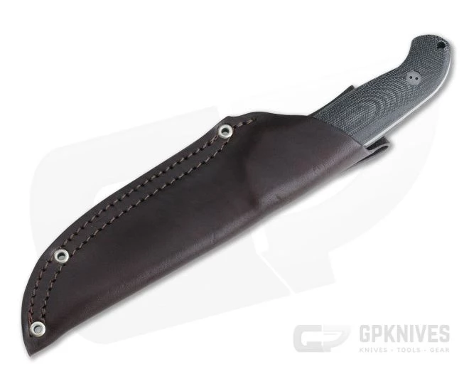 Handle:Â Black canvas Micarta handle scales are 3D contoured with a generous palm swell for comfort and security in a variety of grips. An index cutout creates an integral guard which pairs with aggressive spine jimping to keep the knife secure in-hand during use. A big flare at the pommel locks the hand in offering a nice, comfortable grip for even XL hands. A generous hole at the pommel allows for lanyard attachment. The scales are secured to the tang via 416 stainless custom fasteners heat treated to 40 Rc and black oxide finished.