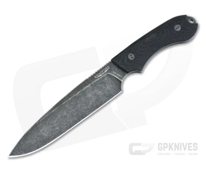 The classic Guardian6 fixed blade from Bradford Knives is a full sized tactical field knife that is ready for anything you can throw at it. Just big enough for chopping the G6 has a generous finger choil that allow for enhanced control needed for finer cutting tasks and provides an added guard when deployed for martial use. This version comes with smooth, 3D Contoured, Black Micarta scales and a Sabre Ground, Nimbus finished, CPM-3V blade.