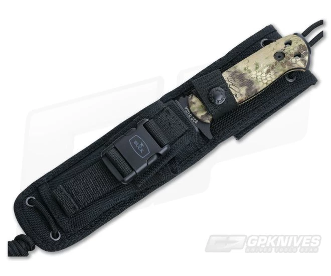 A handy USA Made fixed blade for outdoor to tactical use with modern Kryptek styling from Buck Knives is the 822 Sentry model. This is a full tang of hard working 420HC steel with a non-reflective black traction coating. Built for the field.