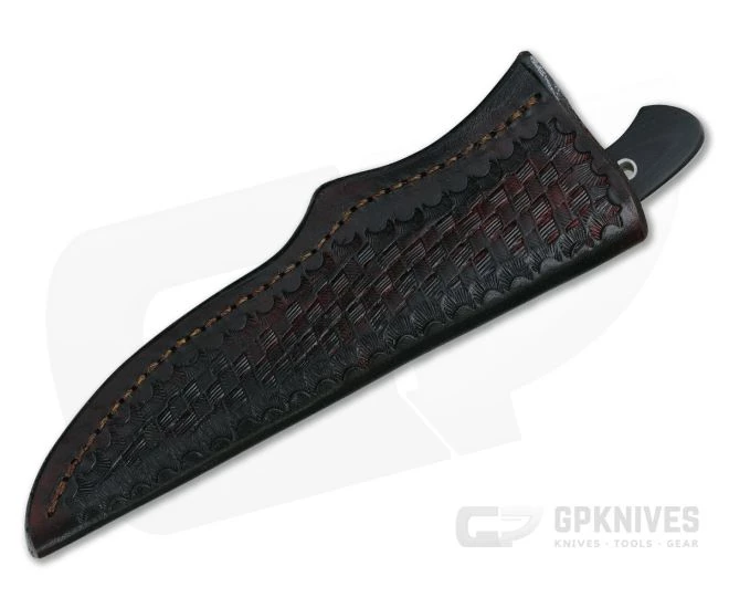Sheath:Â Carries via a hand tooled, stitched leather belt sheath.
