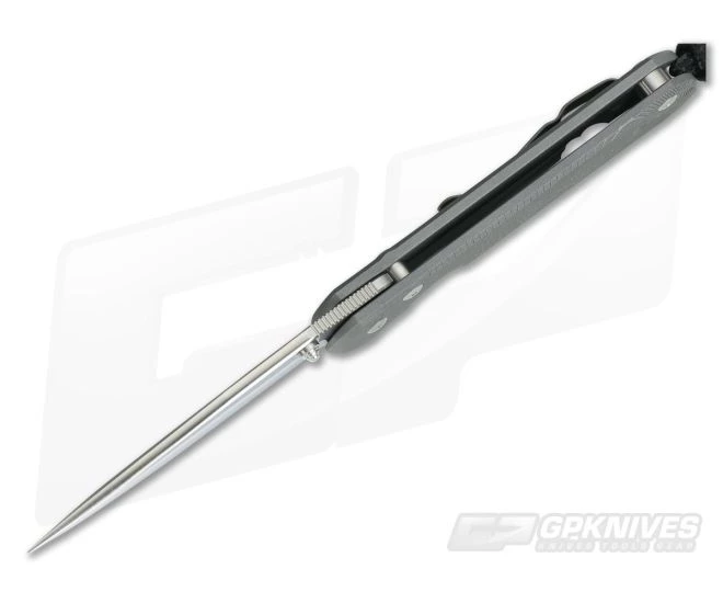 The Blade:Â Traditional drop point blade style composed of premium CPM-S35VN has been fully stonewashed. Â The stonewash finish is great for day to day use showing little wear. Â Single silver titanium thumb stud attached for right hand opening. Â Blade operates incredibly smoothly and is delivered absolutely razor sharp. Â