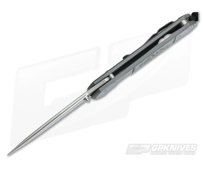 The Blade:Â Traditional drop point blade style composed of premium CPM-S35VN has been fully stonewashed. Â The stonewash finish is great for day to day use showing little wear. Â Single polished titanium thumb stud attached for right hand opening. Â Blade operates incredibly smoothly and is delivered absolutely razor sharp. Â