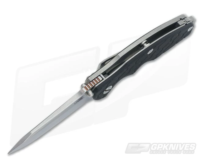 The Blade: This spear is thick and slicey. It has enough belly to tackle every day chores to skinning dinner and everything in-between. It is fully stonewash finished to hide wear ‘n tear with dual thumb stud/integral flipper notch operation. It has a slightly raised thumb ramp with over half an inch of comfortable jimping. It flips quite well, but a bit of wrist action may be necessary.