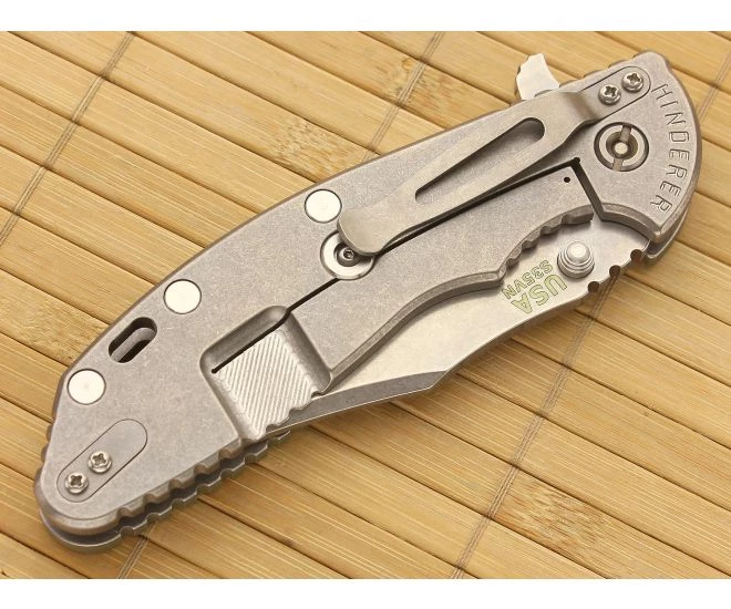 The Hinderer Knives 4.0 XM-24 with utility Bowie Blade and OD Green G-10 scale will make a dependable back up. Completely customizable, the XM-24 is at the top of the XM folder lineup built for those with larger hands or operate with gloves on. The four inch blade is stonewashed and can be opened via the integral flipper or dual thumb studs/blade stops. Full titanium frame lock, liner, hardware and standoffs create one tough package. 3D texturing on the G-10 scale coupled with jimping all around add the solid grip. There is even a bit of a choil to choke up on the blade for more detailed cutting tasks. This Hinderer XM-24 Bowie includes the famous Hinderer Lockbar Stabilizer and two-position titanium clip for tip up or down right hand carry.