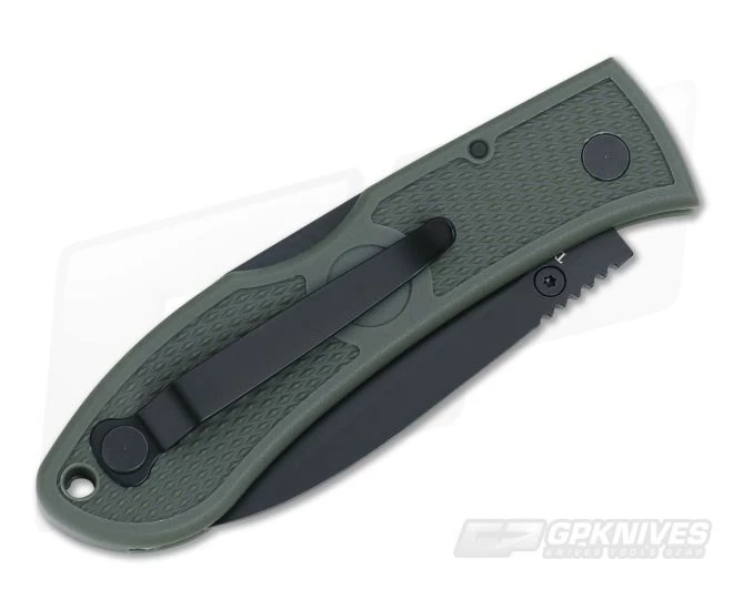 The Dozier Folding Hunter lockback pocket knife is an award-winning classic from Kabar Knives. This version designed by legendary maker Bob Dozier comes with a foliage green Zytel handle and black finished AUS 8A stainless steel hunter blade.