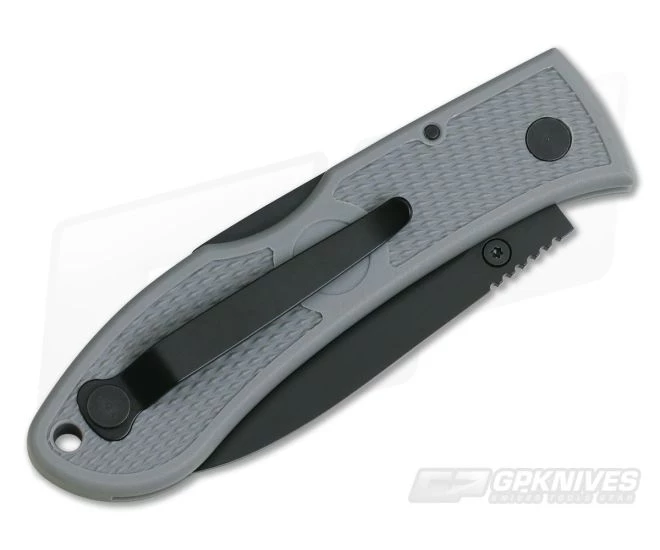 The Dozier Folding Hunter lockback pocket knife is an award-winning classic from Kabar Knives. This version designed by legendary maker Bob Dozier comes with a Gray Zytel handle and black finished AUS 8A stainless steel hunter blade.