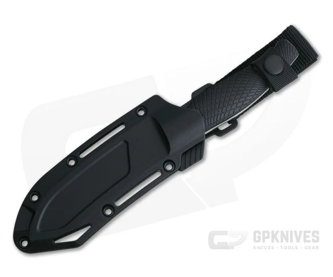 Sheath: Carries via a Glass-filled nylon sheath with lock, snap-down strap, belt loop, webbing slots, and tie holes.