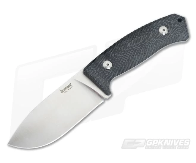 The Blade:Â The LionSteel M3 has a full flat ground, drop point blade with a crowned spine made from Niolox steel. Niolox is highly wear and corrosion resistant and with a 5mm thick blade stock this knife performs optimally as a hunting and outdoor field knife. Its surface has a satin finish and the edge is razor sharp out of the box.