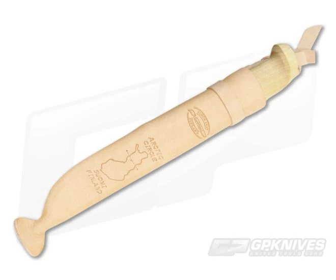The Arctic Circle name comes from Marttiini’s location and the contrast of their bright summer nights and dark winter days. The blade design makes for a great carving knife and is ideally suited for light jobs. The Carbinox T508 blade is more corrosion resistant than traditional carbon steels due to the 8% chromium content and is simple to maintain, just dry between uses and oil with unsalted oil on a regular basis. Being a carbon steel it still has the toughness, ease of sharpening and durability that is expected. Smooth natural birch wood handle has a contoured shape for a firm and safe grip. Includes a light tan leather sheath with embossed Marttiini Logo.