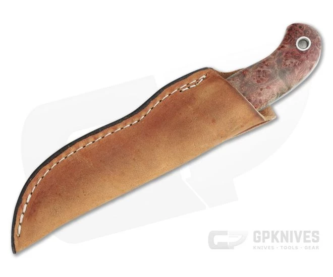 Handle:Â Simple and ergonomic are perfect words to describe the handles of the Irie 110. The subtle guard, generous palm swell and birds beak pommel help secure the knife in your grip while still allowing for the knife to be comfortable in multiple grips and easily maneuverable for a variety of tasks. This piece comes with polished Black Linen Micarta bolsters and a beautiful, stabilized dyed Maple Burl wood handle. A large, polished stainless steel tube is provided for lanyard attachment.