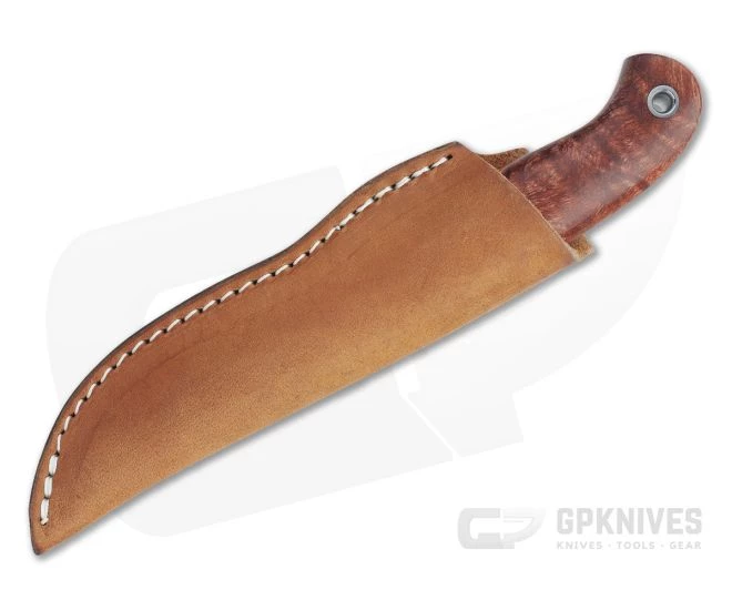 Handle:Â Simple and ergonomic, the stabilized Maple wood scales are full contoured for a hand filling handle that is comfortable in nearly any grip. The subtle guard, generous palm swell and birds beak pommel help secure the knife in your grip while still allowing for comfort and maneuverability for a variety of tasks. This piece comes with beautiful, stabilized Maple burl wood handles. Dual polished stainless steel tubes fix the handle and allow for lanyard attachment.