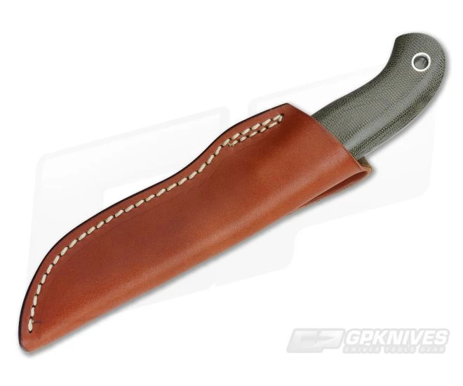 The Mike Irie Custom Model 110 lightweight Hunter is a medium sized fixed blade knife that is perfect for hunting or even tactical use. This 110 is formed around a full tang of CPM-154 stainless steel which has been horizontally hand-rubbed. A thumb rest on the spine of the blade as well as the ergonomically shaped canvas micarta handle guarantee comfort and control. These have excellent fit and finish with contoured handle scales that are attached with tubes that allow the addition of a lanyard or lashed up to a pole. This knife includes a brown leather sheath for belt carry. Brand new direct from custom maker Mike Irie.