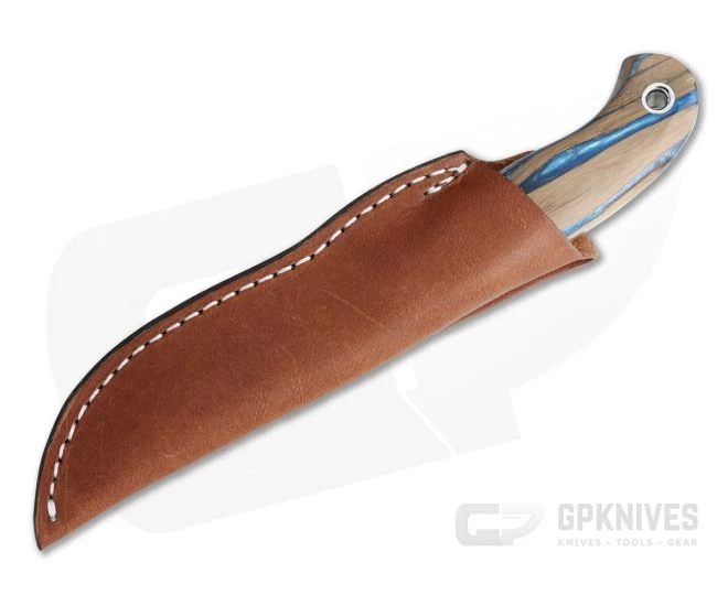 The Mike Irie Custom Model 110 lightweight Hunter is an ideal size for hunting, woodcraft or daily carry or as a mid-sized fixed blade for any collection. Mike Irie is renowned for his hand ground blades and his Custom Model 110 showcases his skill and attention to detail. This piece comes with a hand rubbed satin finished blade of CPM-154, polished black G10 bolsters and Blue Resin Maple Wood handles.