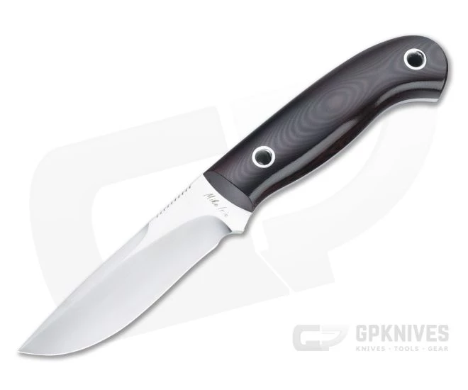 The Mike Irie Custom Model 110 lightweight hunter is an ideal size for hunting, woodcraft or daily carry or as a mid-sized fixed blade for any collection. Mike Irie is renowned for his hand ground blades and his Custom Model 110 showcases his skill and attention to detail. This version comes with a hand rubbed satin CPM-154 stainless steel spear point blade and burgundy linen Micarta handle scales.