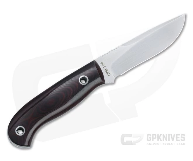 Blade:Â A perfect hunter’s blade, the utilitarian spear point has a fine tip, slicing shallow hollow grind and subtle recurve cutting edge. The spear point swedge trades a small amount of durability at the tip for enhanced piercing performance and a shorter grind for balanced overall performance. Coming in at about 7/8″ wide, the blade is narrow enough for skinning tasks and durable enough for heavier work. CPM-154 provides a good balance of performance and is equipped with a hand rubbed satin finish for a classy, custom feel. Jimping at the spine delivers a solid thumb rest with enhanced traction while a subtle guard on the ricasso offers added safety.
