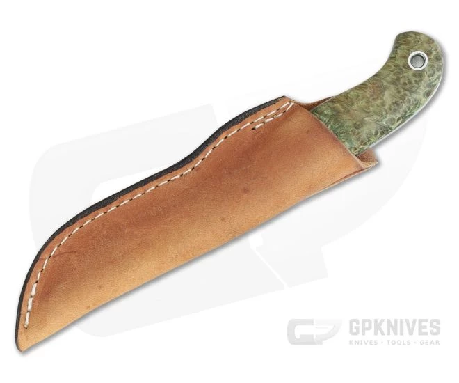 Handle:Â Simple and ergonomic are perfect words to describe the handles of the Irie 110. The subtle guard, generous palm swell and birds beak pommel help secure the knife in your grip while still allowing for the knife to be comfortable in multiple grips and easily maneuverable for a variety of tasks. This piece comes with polished Black Linen Micarta bolsters and a beautiful, stabilized dyed Maple Burl wood handle. A large, polished stainless steel tube is provided for lanyard attachment.