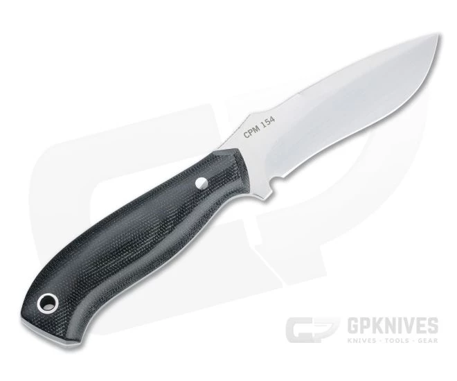 Blade:Â A perfect hunter’s blade, the utilitarian spear point has a fine tip, slicing shallow hollow grind and subtle recurve cutting edge. The spear point swedge delivers a fine point for piercing and detail work. Coming in at about 7/8″ wide, the blade is narrow enough for skinning tasks and durable enough for heavier work. CPM-154 provides a good balance of performance and is equipped with a hand rubbed satin finish for a classy, custom feel. Jimping at the spine delivers a solid thumb rest with enhanced traction, while an index guard delivers added safety in heavy use.