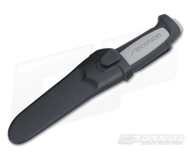 Mora of Sweden Robust model has an upgraded more impact resistant TPE rubberized polymer handle and thicker scandi-ground Swedish carbon steel blade over the Basic 511 model. The easy to clean textured ergonomic handle also has a large finger guard to keep fingers out of the cutting area. Includes black molded sheath with belt clip and water drainage hole. Great for your pack, tackle box or tool shed.