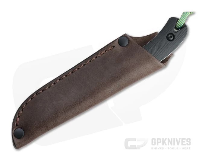 Handle:Â Comfortably contoured matte blasted Richlite handles are attached to the full tang blade with black oxide stainless steel hardware providing a durable, low maintenance platform for use. The blasted texture milling delivers plenty of traction for use in all conditions while the index groove provides added safety. An attached lanyard gives added real estate and easy draw. Lanyard color may vary.
