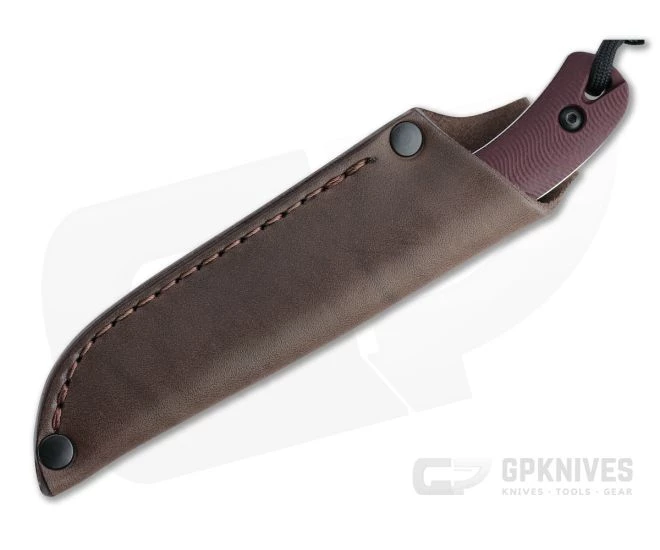 The Axiom from Smith & Sons is an everyday carry fixed blade designed for versatile utility. Compact and easy to carry the Axiom makes a good backup or reliable replacement for your folding knife. Streamlined and refined, the Axiom V2 comes with a smooth tumbled finish on the AEB-L blade with textured and contoured handle scales without liners. This version has burgundy Richlite scales.