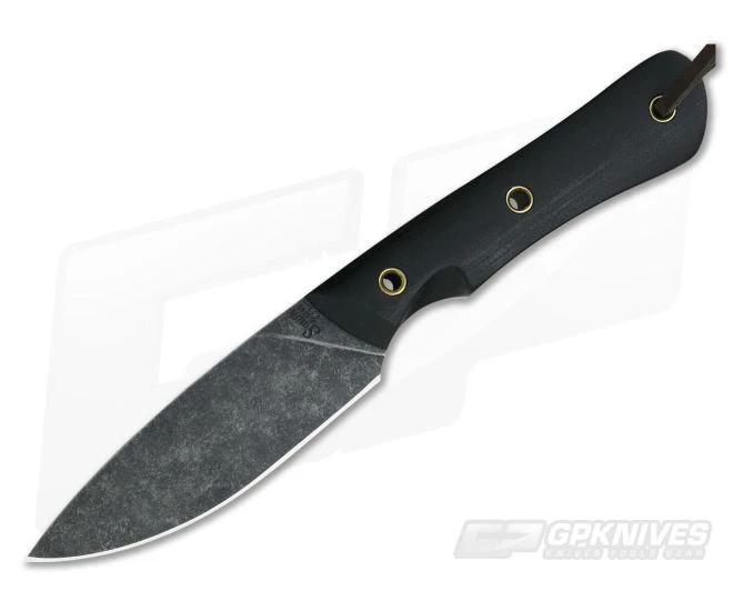 The Handle:Â Black Canvas Micarta handle scales are attached with flared brass pins for a very secure construction. The scales are shaped and contoured for a great and comfortable in-hand feel while still being comfortable in a variety of grips. A subtle index finger cutout with dual handle grooves which, along with the pommel swell, provide a secure, four-finger grip. The included leather lanyard provides added security when putting the knife to serious use.