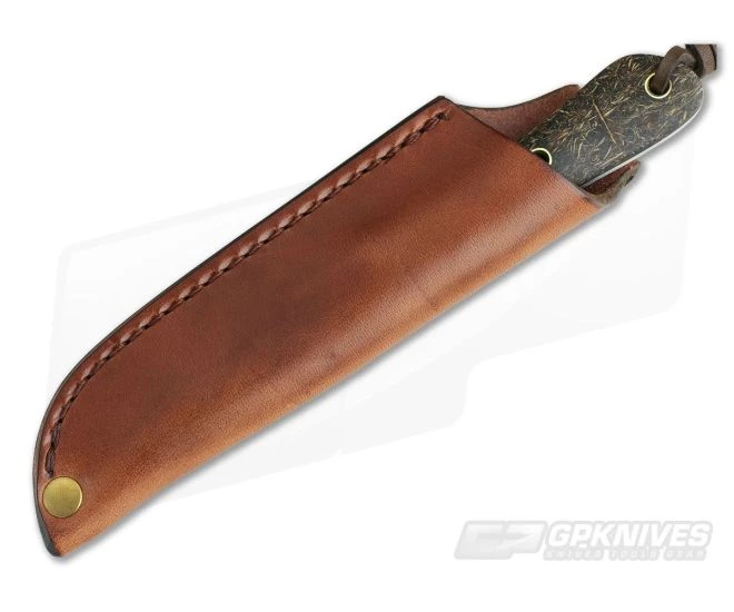 Handle:Â Striking Coconut Fiber Micarta handle scales are attached with flared brass pins for a very secure construction. The scales are shaped and contoured for a great and comfortable in-hand feel while still being comfortable in a variety of grips. A subtle index finger cutout offers added security. The included leather lanyard adds to the length of grip and helps draw the knife from the sheath.