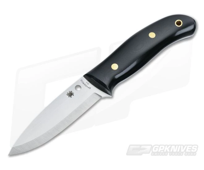 Spyderco BushCraft fixed blade survival knife designed after the Southern Hemisphere Bushmen. The Bushcraft knives must follow several criteria to meet the specifications of these Bushmen. This version, produced by Spyderco, follows those precisely. The knife features a full tang four inch blade, produced of 0-1 high carbon tool steel. The contoured and polished G10 handles are attached to the tang using brass pins. The blade is Scandi ground and ideal for chopping, whittling and game processing. Includes a leather belt sheath.