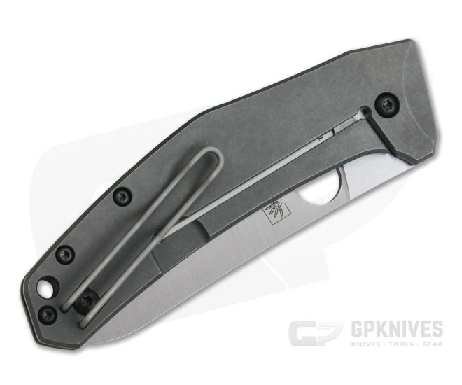 Handle:Â Reeve Integral Lock frame is made from dark tumbled titanium with open back construction. A relief cut into the top frame offers quick access to the thumb hole for deployment and easy access to the lock-bar when in the open position. Finishing touches include a reversible deep carry wire pocket clip and built-in lined lanyard hole offer convenient carry options.