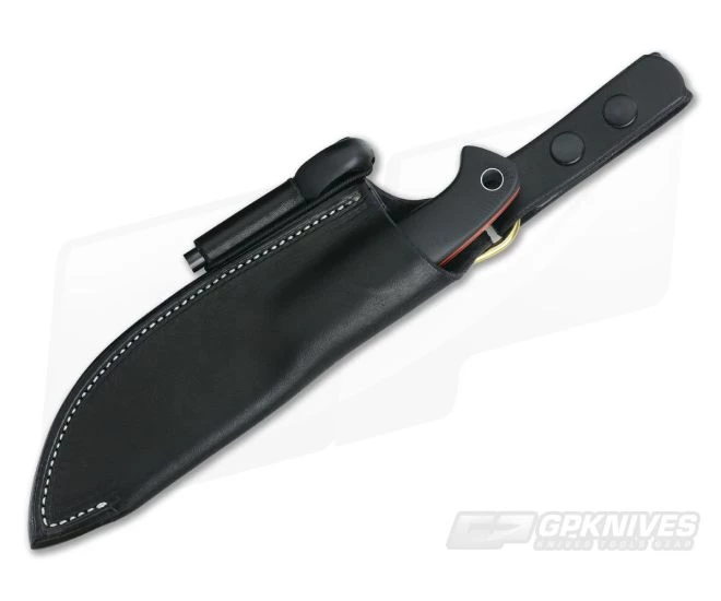 The Sheath:Â ships in a custom made black leather sheath with a dangler and Light My Fire ferro rod.