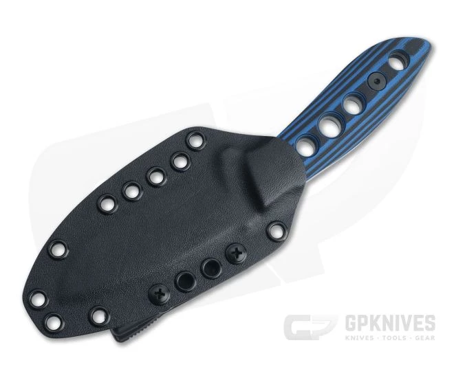 K9 Knives is the mid-tech line from custom maker Tom Krein rendering his iconic designs in a more economic machine ground construction. The Model 6 is a drop point hunter that works well as an outdoor field knife or tactical fixed blade thanks to a 3/16″ full tang construction paired with Tom’s versatile and ergonomic handle design. This version comes with a stonewashed D2 tool steel blade and hole milled blasted blue/black G10 handle scales.
