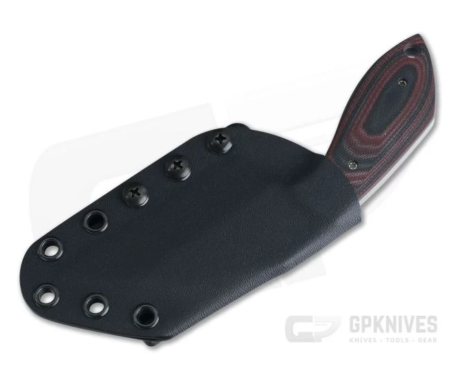 Trash Panda Knives is a collaborative project including custom knife makers Aaron Frederick, John W Smith and CJ Smith that offers extreme hard use knives that are built to use and take on whatever you can throw at them. The F Off is a compact, robust fixed blade with a Wharncliffe blade that lends itself to both utility and martial use. The F Off carries like a small knife but cut like a big one. This version comes with a hollow ground, stonewashed CPM-3V blade and red & black G10 handle scales.
